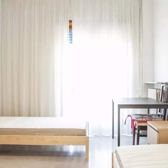 This 75 m², 3-bedroom apartment in the Tuscolano district has bright rooms available to rent. The main common area is the eat-in kitchen which has a microwave, but there is a big comfy armchair in the corridor as well. There is 1 full bathroom to share, and each room comes with its own independent key. Tuscolano, in southeast Rome, is a peaceful residential area. On Via Sestio Menas, the apartment is surrounded by plenty of amenities. Within a 5-minute walk of the apartment you can find grocery stores, pizzerias, and banks. You are also well...