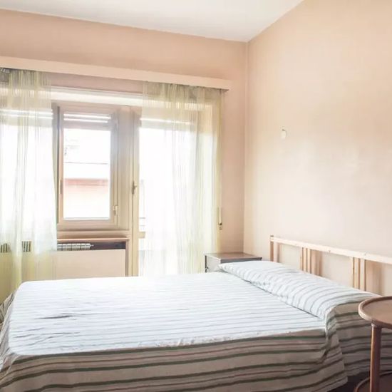 This bedroom features a double bed, desk, sofa, chest of drawers, shelving, and a standalone wardrobe. The room offers a heating unit, independent key, and access to the balcony that is shared with the kitchen. Rooms are available to rent in this large and fully furnished apartment in the Portuense district of Rome. This tranquil area is well connected and is a great option for those looking to live away from the hectic city. Nevertheless, it also has fantastic amenities, such as parks, supermarkets, and a hospital nearby. The 110 sqm proper...
