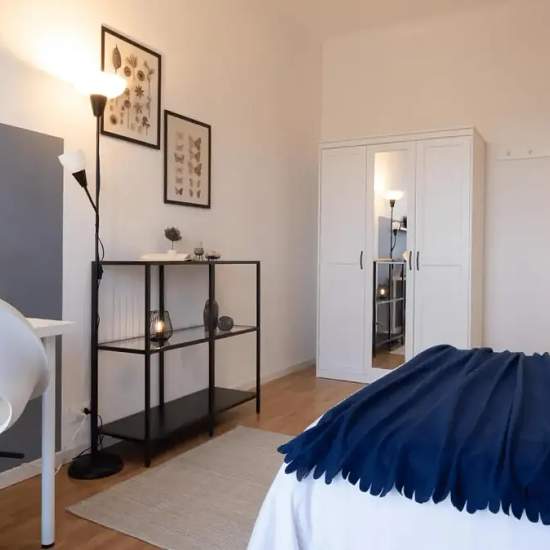 Zona Mirafiori Sud, posizione strategica e ambita, si affitta una bellissima stanza suite Stanza Semplice ristrutturata appositamente per offrire comfort e comodità ai nostri studenti. La stanza è dotata di letto alla francese con cassettiere estraibili, armadio 3 ante, scrivania con portaoggetti, libreria, comodini, specchio e tendaggi. I colori delle pareti favoriscono il buon umore e aiutano nello studio. Spotahome presents a comfortable room in a shared 4-bedroom apartment for rent in Turin's vibrant Mercati Generali-Lingotto area, exclu...