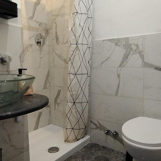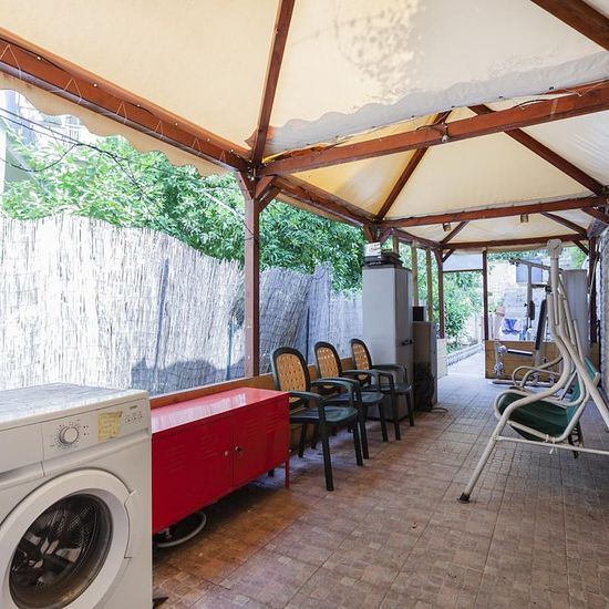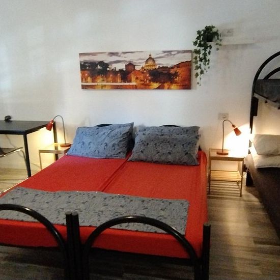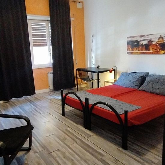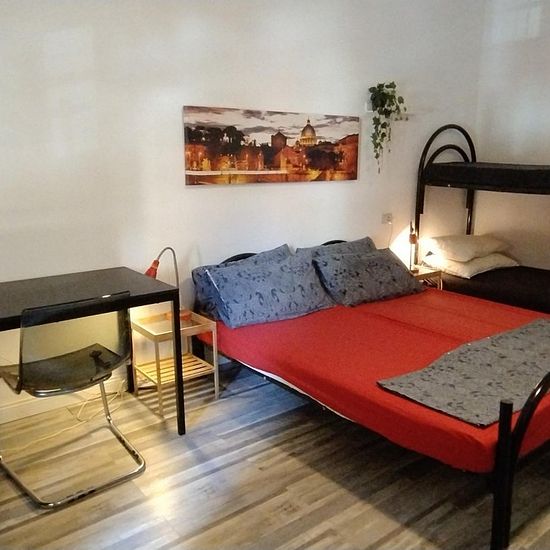Camera singola con bagno e balcone letto matrimoniale e tv fronte letto comodino mobiletto e armadio aria condizionata zona soggiorno di 20mq tavolo e sedie per 4-5 persone. Si può inoltre usufruire della cucina per riscaldare una vivanda e porre qualcosa in frigo. Patio esterno di 60 mq per stendere i panni e lavatrice. Permanenza minima 6 mesi max 12mesi.