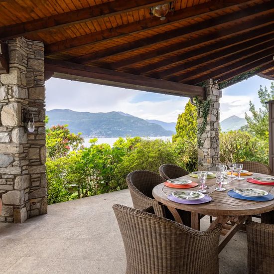 Questa magnifica Villa di 150 mq è situata in una zona residenziale immersa nel verde, in una posizione davvero privilegiata: da qui si può ammirare il lago in tutto il suo splendore. L’ingresso si apre su una spaziosa sala da pranzo e un salotto che affacciano direttamente sul portico. Qui potrete rilassarvi sorseggiando un drink in tranquillità o gustando un pasto in compagnia, contemplando la vista lago. Proseguendo si trova la splendida piscina che offre una splendida veduta sul lago e un rigoglioso parco, che circonda la proprietà. All'...