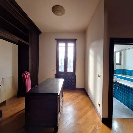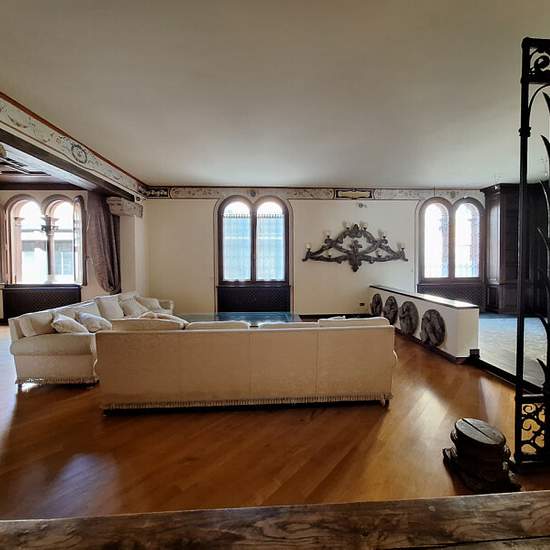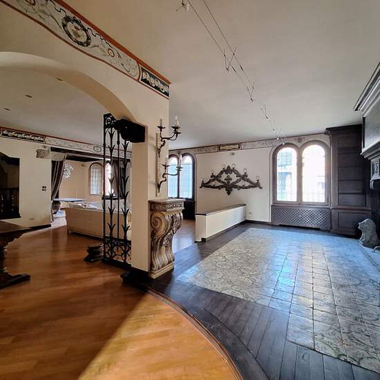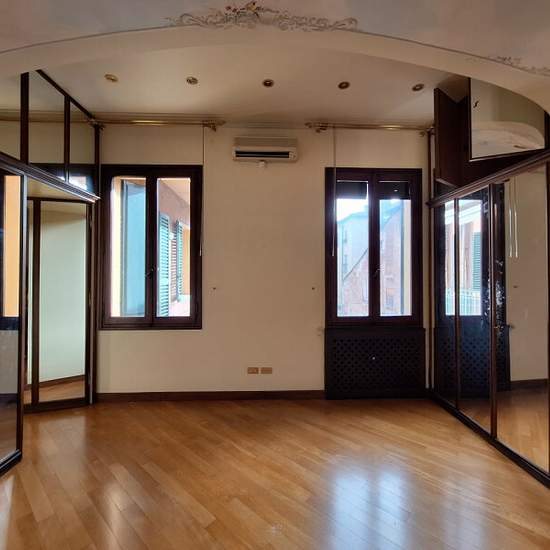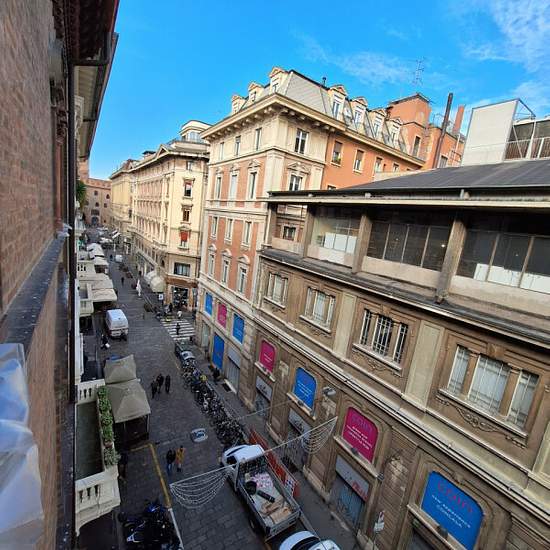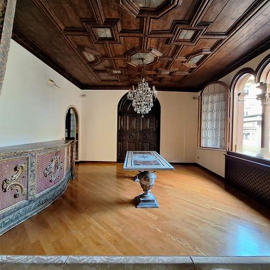 Appartamento plurilocale in affitto a bologna In pieno centro storico zona Quadrilatero, in palazzo storico, appartamento di 250 mq disposto su due livelli, al 3 ed ultimo piano con ascensore. Composto: ingresso su doppio salone illuminato da ampie ed eleganti finestre a bifora con camino del '500, sala da pranzo con soffitto a cassettoni veneziano e tavolo in marmo con poltrone antiche, cucina abitabile arredata con balcone, studio con bagno, 2 camere matrimoniali con bagni privati, stanza guardaroba e bagno. Al piano superiore camera con ...