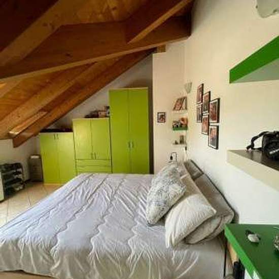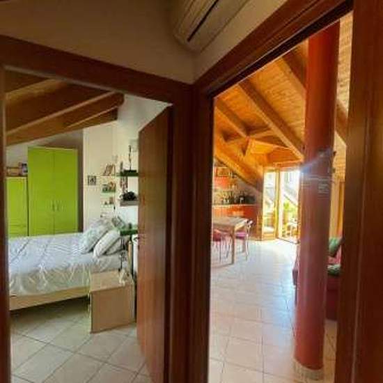 Bella mansarda ristrutturata e arredata in stile moderno, al 4° piano, con ascensore, di: ingresso su ampia zona giorno con parete cottura e terrazzino, camera da letto con velux, bagno con doccia e lavatrice, ripostiglio cabina armadi. Infissi con doppio vetro; climatizzatori, portoncino blindato. Riscaldamento autonomo. Basse spese. Libera da ottobre 2025. Richiesta fidejussione bancaria
