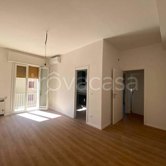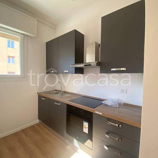 In stabile anni '60, appartamento molto luminoso e silenzioso di mq. 60 circa, sito al quinto piano (con asc), completamente ristrutturato, mai abiatato, arredato solo di cucina, composto da: ingresso, soggiorno, cucinotto, camera, bagno, ripostiglio e balcone. Riscaldamento centralizzato, aria condizionata. Libero da subito No studenti, lavoratori con contratto a tempo indeterminato. € 1.100