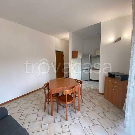 In bel contesto condominiale tenuto bene , al primo piano senza ascensore, grazioso appartamento composto da soggiorno servito da un terrazzo e con angolo cottura, disimpegno, bagno con doccia e camera matrimoniale. I pavimenti sono in monocottura, mentre i serramenti sono con gli infissi in legno con doppi vetri. Annesso all'appartamento c'è una cantina privata in cortile. Nelle immediate vicinanze c'è un comodo parcheggio libero adiacente al condominio. L'appartamento è disponibile da subito. Solo referenziati. Tutte le utenze sono autonom...