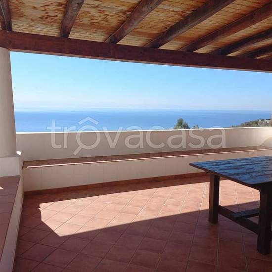 La casa si trova al piano terra di una villa bifamiliare, è dotata di un grande terrazzo ventilato interamente coperto con tipiche pulere e bisuoli in stile eoliano, ha uno splendido panorama con vista sulle isole di Lipari e Vulcano. Vi sono anche tavolo e sedie, dove poter consumare i pasti, e anche delle sdraio prendisole. Ha un'entrata indipendente dal terrazzo che immette nella comoda cucina-pranzo attrezzata con piano cottura a quattro fuochi, congelatore oltre a tutte le stoviglie, inoltre vi è anche un'ampia finestra. Dalla cucina si...