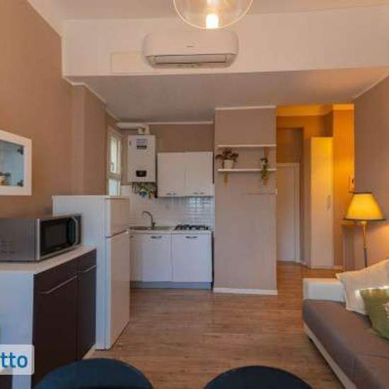 Moderno appartamento di design al piano rialzato arredato in stile contemporaneo. Ristrutturato 5 anni fa, presenta serramenti con doppi vetri, riscaldamento autonomo, aria condizionata in camera da letto e in salotto, classe energetica a1. Composto da camera da letto matrimoniale con armadio a 4 ante ed esposizione sul cortile interno, soggiorno con divano letto matrimoniale ed angolo cottura, bagno finestrato. L'appartamento viene affittato per periodi da 1 a 12 mesi e, per un costo del servizio di 150€ mese in più, vengono fornite: pulizi...
