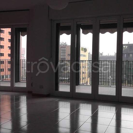 Appartamento in Affitto in viale Pirelli 14. Milano Bicocca. Bilocale di Mq 64 all’ottavo piano con esposizione sulla piazza pedonale Trivulziana. Ingresso, soggiorno con cucina all’americana, anticamera arredabile, camera, bagno, terrazzo loggiato di Mq 28. Vasca-combinato-doccia Jacuzzi con idromassaggio verticale e orizzontale. Tende da sole. Semi-arredato: cucina completa di elettrodomestici, lavastoviglie, lavatrice, armadio 5 ante, mobili da bagno. Impianto autonomo di Teleriscaldamento e Teleraffrescamento. Doppia cantina. Ampio box s...