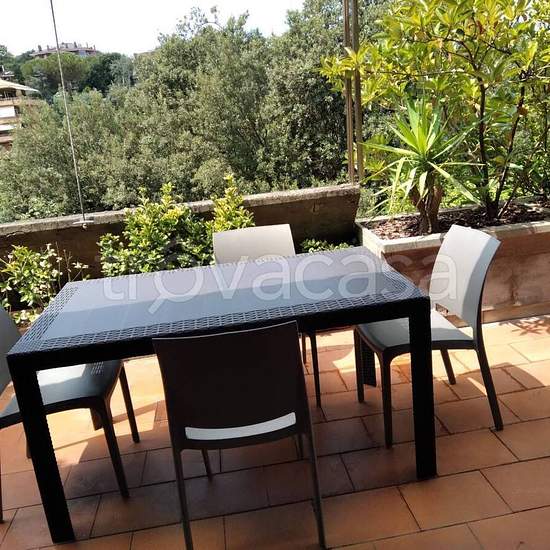 Appartamento Camilluccia in comprensorio a 300 m da Piazza Giuochi Delfici/Vigna stelluti e a 200 m da piazza igea (e vicinissimo a Ministero Esteri ed anche Policlinico Gemelli) con terrazza immersa nel verde su Parco dell'Insugherata 60 mq composto da camera da letto con bagno, soggiorno con cucina, terrazzo, aria condizionata, posto auto privato interno coperto ed anche esterno. Servizo Portineria. Libero da dicembre o anche prima su esplicita richiesta