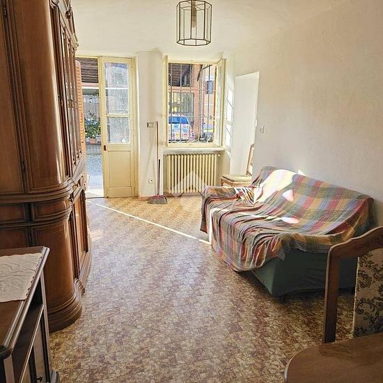 In prossimità del mobilificio 'Cat Berro', del Ristorante 'Il Gallo' e comodo al comune di Leinì, appartamento al piano terra con box auto, deposito e giardino privato, situato in contesto di casa di corte. Il giardino è distaccato dalla casa e si trova di fronte all'appartamento, adiacente al box auto e al locale deposito. L'immobile è composto da ingresso su soggiorno, cucinotto con finestra, bagno con vasca, cantina e camera da letto matrimoniale. Si precisa che sono in corso dei lavori di miglioria, quali installazione serramenti esterni...