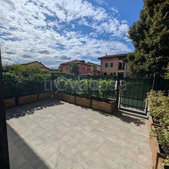 Bilocale completamente arredato a San Vito di Spilamberto, all'interno di uno splendido borgo in campagna ("Prati in fiore") e in zona comoda a 3 km dal casello di mo Sud. Giardino con portico sul retro e ulteriore ampio spazio esterno privato all'ingresso. Dotato di garage al piano interrato, posto auto nel cortile condominiale e parco condominiale.