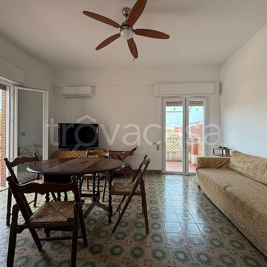 Lavinio Mare - precisamente in via Perla Marina A pochi passi dal mare, proponiamo in affitto per i mesi estivi, un appartamento sito al secondo piano senza ascensore composto da salone con terrazzo e tende da sole, cucina abitabile, due camere da letto, bagno. Tutte le camere hanno i ventilatori a pale nel soffitto, il salone e la camera matrimoniale hanno i condizionatori a pompa di calore freddo/caldo. Gli infissi sono nuovi doppio vetro/pvc. Gas con bombola. Posto auto coperto in area condominiale chiusa. Posti letto 4/6. Spese di pulizi...