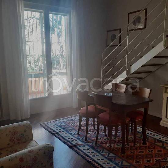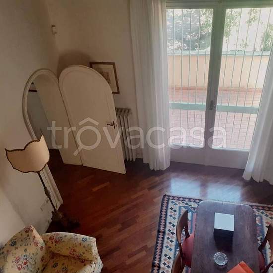 Giardini Margherita - Via delle rose In signorile stabile con ascensore appartamento su due livelli completamente arredato con affacci sul verde. Ingresso, soggiorno, cucinotto, due camere, doppi servizi, soppalco uso studio, lavanderia, terrazza e posto auto privato. Riscaldamento centralizzato con contacalorie. Libero dal luglio. La proprietà non prende in considerazione contratti con studenti, contratti brevi, e contratti per b&b.