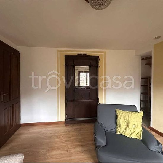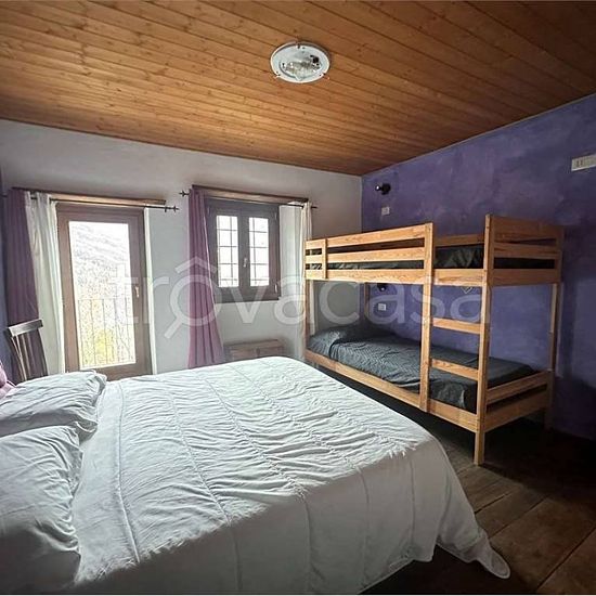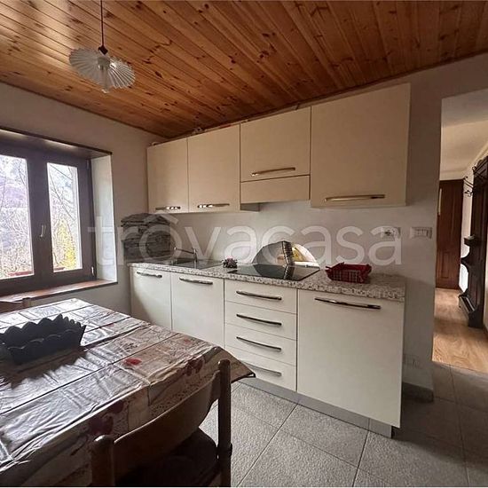 Charming and characteristic accommodation with views of the Italian Alps, comprising a living room with pellet stove, kitchen, bathroom on the ground floor, and bedroom on the first floor. €600/month
