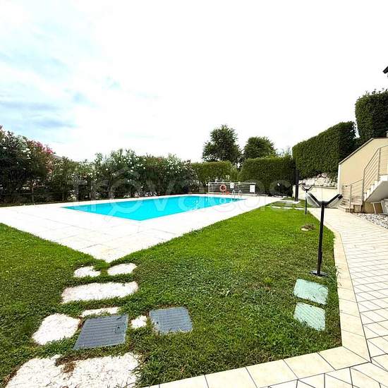 Lonato del Garda: affittasi annualmente ampio trilocale situato al piano terra di un elegante residence con piscina comodo a tutte le vie di comunicazione e servizi costituito da ingresso, spaziosa zona giorno con cucina a vista dotata di lavastoviglie e accesso diretto al giardino, camera matrimoniale, camera singola, bagno finestrato con box doccia e lavatrice, garage doppio al piano interrato. Completamente arredato. L'appartamento dispone di una doppia esposizione con giardino privato in entrambi i lati. Spese condominiali incluse nel ca...