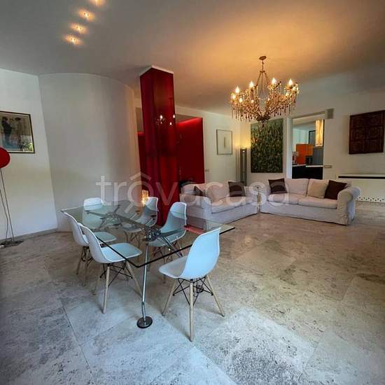 Affittasi elegante porzione di villa con giardino e piscina ad uso esclusivo, situata in un prestigioso contesto residenziale immerso nel verde, con servizio di portineria e su richiesta possibilità di eventuale box auto privato. L'abitazione di circa 205 mq, si distingue per gli ampi spazi interni e per il raffinato patio affacciato sul giardino, da cui si accede direttamente alla splendida piscina privata. Tutti gli ambienti godono di eccezionale luminosità grazie alle grandi vetrate che si affacciano sul verde circostante. Il soggiorno do...