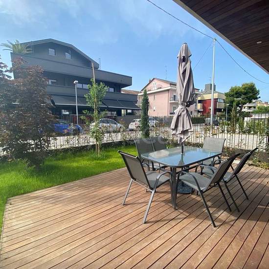Riccione porto, trilocale con giardino di nuova costruzione ***affitto settimanale/singole notti*** Internamente si compone di: ingresso su soggiorno e angolo cottura, l’ambiente è molto luminoso, grazie alle grandi vetrate che permettono alla stanza di comunicare con il giardino esterno. La zona notte è composta da una camera matrimoniale, una camera singola e due bagni con box doccia. A completare la proprietà un posto auto esterno. Clicca qui per preventivi e prenotazioni Il prezzo mostrato in annuncio e' indicativo e rappresenta una med...