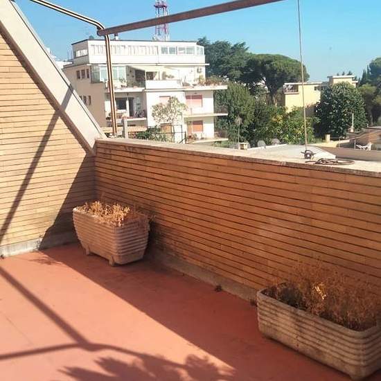 Balduina alta ed esattamente in via Macrobio proponiamo la locazione di un attico di 105 mq commerciali L' attico è stato completamente ristrutturato e ed composto in: Ingresso, soggiorno con camino con uscita sul terrazzo panoramico di circa 18 mq, cucina arredata, piccola sala da pranzo comunicante con la cucina, studio con balcone comunicante al soggiorno, disimpegno con armadio a muro a 4 ante, camera matrimoniale, servizio, cam. Ta con servizio. Completa la proprietà una cantina e la possibilità di un Box auto sotto lo stabile raggiung...