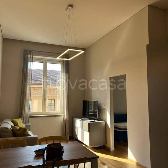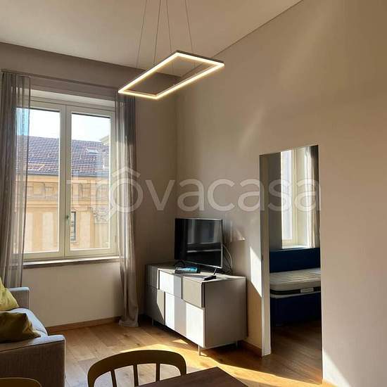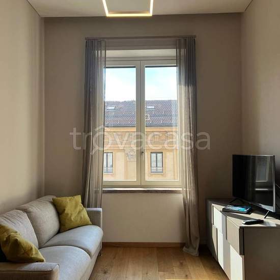 In via Frola, vicino Piazza San Carlo a tre minuti a piedi dalla stazione ferroviaria metropolitana di Porta Nuova, si propone in affitto in stabile di lusso curato e ristrutturato a nuovo in tutti gli spazi comuni nel 2019, un bellissimo trilocale luminosissimo di nuova costruzione, finemente arredato. Sito al piano quarto e servito con ascensore. L'appartamento è arredato modernamente ed è così composto: Ingresso su zona giorno living con cucina a vista e balconcino, due camere da letto, bagno con box doccia in cristallo. Tutte le stanze g...