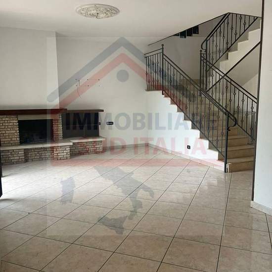 Affitto a Giugliano in Campania VARCATURO: In Via Rannola, disponiamo di una villa bifamiliare in fitto. L' immobile è posto su tre livelli di 100 mq ognuno. Il piano seminterrato è adibito in parte a garage e in parte a taverna; il piano rialzato è composto da un ampio salone con camino, una cucina abitabile e un accessorio; il primo piano è composto da tre camere da letto e un accessorio. La villa dispone di un giardino di 350 mq con un gazebo in legno. Verrà fittata ristrutturata ed accessoriata di cancello automatico e napoletane in fer...