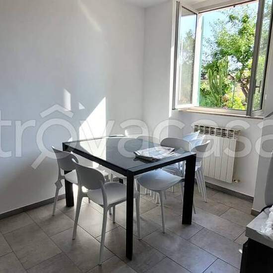 Pieve mare - ingresso, soggiorno, cucina, due camere, bagno, dispensa, da tutte le finestre si gode di una bella vista mare, completa l'immobile un giardino di circa 40mq. L'alloggio viene locato arredato comprensivo di un posto auto , affitto transitorio.