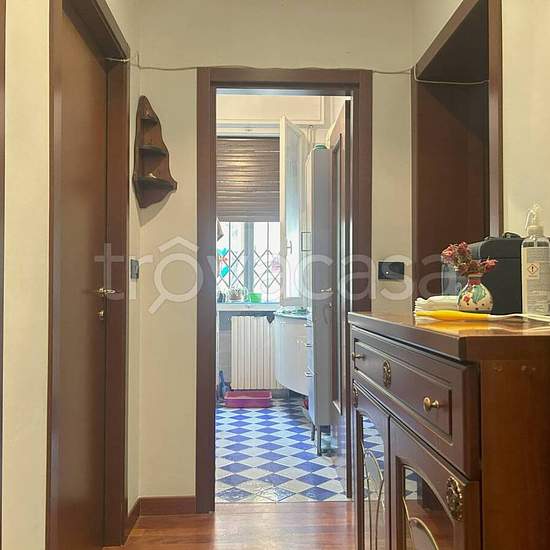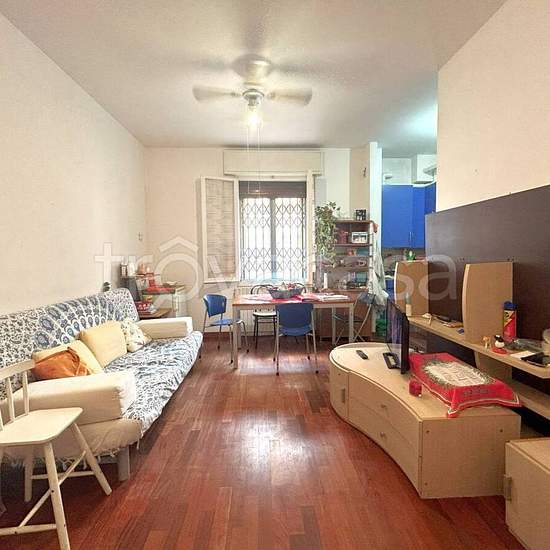Comodo ai servizi alla persona e di trasporto, ubicato al piano ammezzato di fabbricato ben tenuto a vocazione residenziale. Composizione: ingresso su sala con cucina in nicchia a vista, disimpegno/corridoio arredabile, due camere matrimoniali, bagno, comodo ripostiglio attrezzato a lavanderia. Completa la proprietà una cantina. Caratteristiche: luminoso, provvisto di infissi in doppio vetro, cancelletti di sicurezza, pavimenti in parquet, riscaldamento autonomo, ha basse spese di gestione. L'appartamento ha arredo cucina con elettrodomestic...
