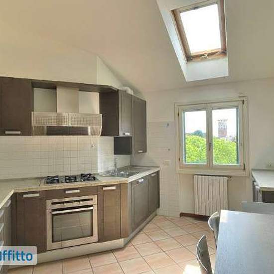 Sono richieste referenze e redditi dimostarbili adeguati al canone di locazione richiesto. Al piano ultimo servito da ascensore, attico disposto tutto su un piano e così suddiviso: ingresso, ampio e luminoso soggiorno dove si accede direttamente al favoloso terrazzo coperto, cucina abitabile spaziosa, disimpegno, 2 camere, locale studio guardaroba uso terza camera, 2 bagni, ripostiglio. Al piano interrato cantina e ampio box singolo. Arredato di cucina. Riscaldamento autonomo, pavimenti in parquet, impianto di climatizzazione soggiorno camer...