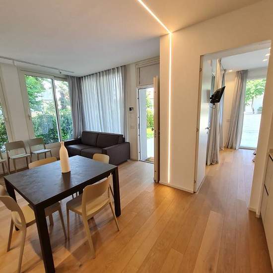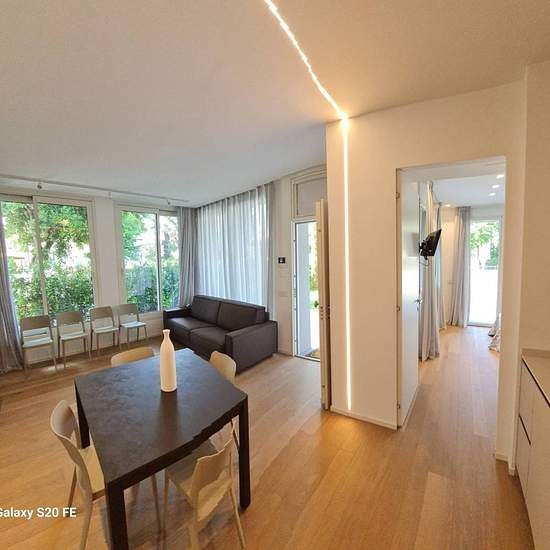 Splendidi e nuovissimi appartamenti in zona centro mare, vicinissimi al mare e al viale ceccarini, in bellissimo contesto riservato di 3 unita', ingresso indipendente. Ogni immobile dispone di ingresso indipendente con ampio giardino privato con posto auto, soggiorno con cucina a vista, due camere matrimoniali, due bagni completi, finiture di lusso e ottimamente arredati. Splendida luminosita' grazie alle ampie finestre, ma in totale privacy. Spazi ben distibuiti e piacevoli. Il giardino curato dona una piacevolezza all'immobile per godere d...