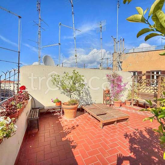 In Via Calabria, a due passi da Piazza Fiume, in un palazzo signorile con ascensore, proponiamo un appartamento al piano attico con un terrazzo panoramico al piano superiore accessibile dalla scala condominiale. L'appartamento è composto da un ingresso, un grande soggiorno con zona pranzo, una prima grande camera da letto o studio, una cucinotto completo, un'altra camera da letto con il bagno con doccia in camera e l'accesso ad un balcone. Dalla scala condominiale si accede, al piano superiore, ad un terrazzo panoramico attrezzato con piante...