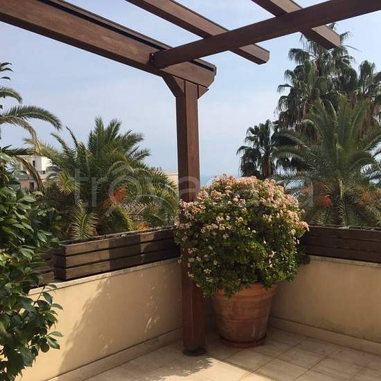 Solo per I mesi di giugno e agosto! Proponiamo in affitto un bellissimo appartamento con grande terrazzo vista mare, a 250 metri dal mare, situato al secondo piano di un residence in una zona prestigiosa di Sanremo, vicino al centro. L'appartamento è molto luminoso e soleggiato, è composto da un soggiorno con accesso al terrazzo (20 mq) abbinato ad angolo cottura con accesso al balcone, 3 camere da letto, di cui una con accesso al terrazzo, 2 bagni e una lavanderia. Lavatrice, lavastoviglie, aria condizionata, tv, wi-fi, posto auto condomini...