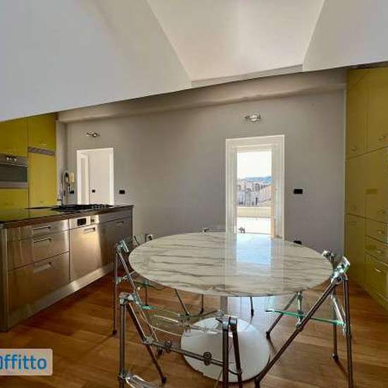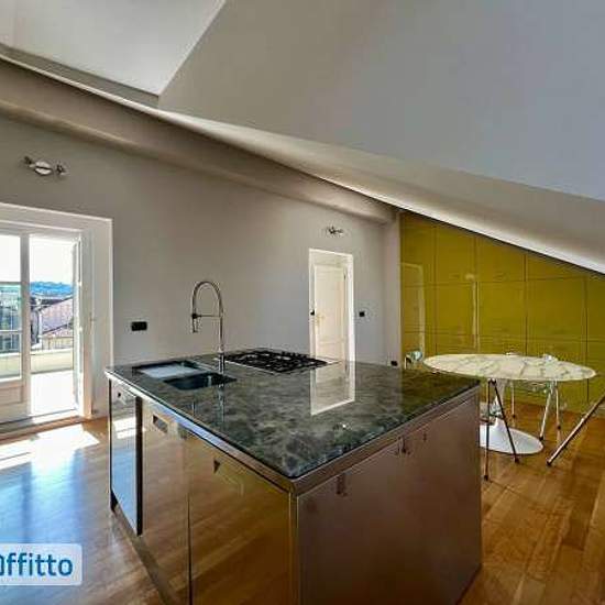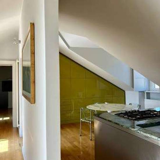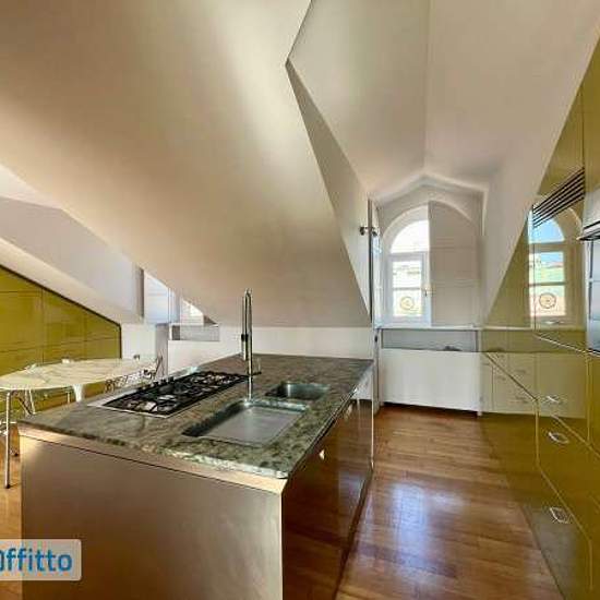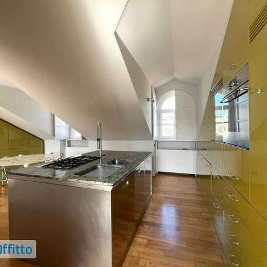 Appartamento sito all'ultimo piano di uno stabile signorile perfettamente curato nelle zone comuni, composto di ingresso su soggiorno living, cucina abitabile e attrezzata, due camere, due bagni e cabina armadio, oltre ad ampia terrazza che si affaccia sul tranquillo cortile interno. L'alloggio si trova all'ultimo piano mansardato ed è raggiungibile tramite ascensore e una breve rampa di scale da fare a piedi. L'alloggio viene affittato arredato e dispone di numerose armadiature a muro, sia nelle camere che nei disimpegni. Aria condizionata ...