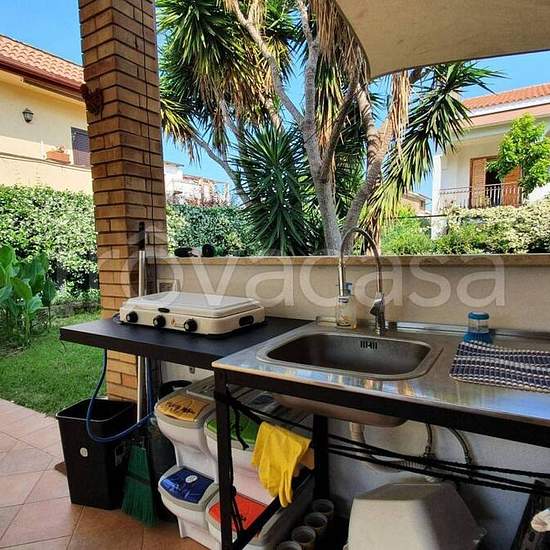 Affitto transitorio. Solo referenziati. Tor San Lorenzo lido consorzio "La Sbarra". 8/10 posti letto. Appartamento a piano terra con patio e giardino. 2 camere matrimoniali, 2 camerette con letto a castello, soggiorno con angolo cottura e letto ribaltabile, un bagno con vasca. Ulteriore doccia esterna nel giardino. Ogni stanza dispone di aria condizionata. Fornito di microonde, lavastoviglie e lavatrice. Nel giardino è presente anche un barbecue. Patio mattonato ideale per pranzare o cenare all'aperto protetti da tende a vela. Nel patio è pr...