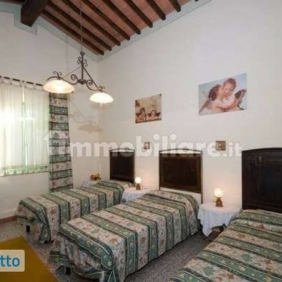 Appartamento di cinque vani e tre camere completamente arredato, con contratto di natura transitoria, di 130 mq in bella struttura turistica in zona collinare in affitto a Capannoli. Rif. 2021p004 l'appartamento si trova al primo piano e si compone da grande soggiorno con camino, cucina abitabile e bagno di servizio con doccia. Nel reparto notte si trovano tre ampie camere, per un totale di sei posti letto e un ulteriore bagno finestrato con doccia. In stile rustico toscano, completamente ristrutturato e corredato da posto auto, piscina e gr...