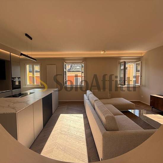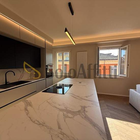 Modena (centro storico) In palazzo referenziato proponiamo al 3 piano con ascensore ampio appartamento ristrutturato, nuovo e mai abitato. L'immobile è così composto: ingresso in salone con cucina a vista, separazione zona pranzo, 2 camere grandi, studio, 2 bagni. L'immobile è modernamente arredato di tutto , parquet nelle stanze, porta blindata, video citofono, aria condizionata , termo-arredi e termoautonomo! Disponibile da subito. Prezzo: 2400€.
