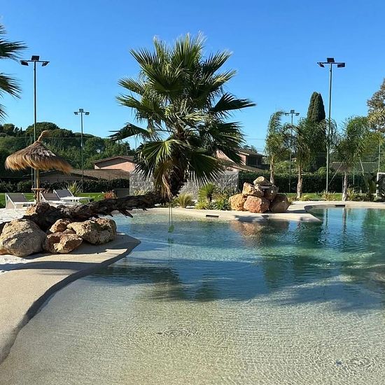 sull'aurelia vicino a roma e località di mare in contesto silenzio e tranquillo ,precisamente a castel di guido affittiamo ad uso transitorio una meravigliosa villa di 450 mq con salone triplo e 5 camere da letto con 5 bagni ed uno splendido parco di 5000 mq con piscina e campo da calcetto,circondato da piante e da giardino ben curato dal servizio di giardineria una volta a settimana ,cpmpleta la proprieta un box doppio e 10 posti macchina,allarma nella villa e cancello elettrico.