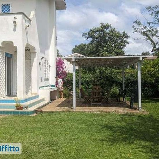 Affitto per mesi estivi a persone referenziate villa bifamiliare 150mq su 3 livelli, Sabaudia in Consorzio Zeffiro con ampio giardino e così composta: Piano rialzato con ampia zona giorno, cucina, zona pranzo e bagno; Piano primo: camera da letto, 2 camerette e bagno; Piano seminterrato: ampia sala e bagno. A soli 800m dalla spiaggia, luminosissimo con ottima esposizione a Sud su 3 facciate, giardino con patio e cucina esterna, posto auto e docce esterne. Prezzo annuncio riferito al solo mese di agosto. No agenzie