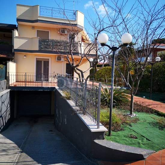 Villa in complesso signorile di recente costruzione cosi composta:piano giardino 2 locali luminosissimi,cucina,1bagno con doccia ,tutti i locali hanno accesso al giardino,lavanderia ripostiglio esterno,scala a vista con accesso al piano 1* cosi composto:3 locali luminosissimi con accesso ai terrazza-balcone,bagno con vasca e ripostiglio -lavanderia.L'immobile è dotato di impianto anti-intrusione,gli infissi sono termici e tapparelle elettriche, piano interrato garage si 100mq circa.Zona ben servita da mezzi pubblici e altri servizi