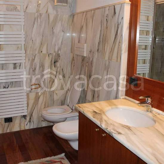 In elegante contesto affittasi villetta a schiera completamente arredata così composta: - al piano terra da ampio salone, cucina abitabile, servizio per ospiti; - al piano primo secondo salone, ampia camera padronale, bagno con vasca idromassaggio e doccia, guardaroba; - al piano secondo studio a vista sul soggiorno, due camere, un bagno; - al piano interrato ampio locale con cambio guardaroba, lavanderia, sauna, vano blindato. Completano la proprietà un giardino piantumato con olivi, ampio garage di mq. 40 per due auto di grossa cilindrata,...
