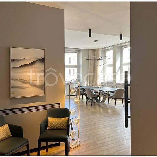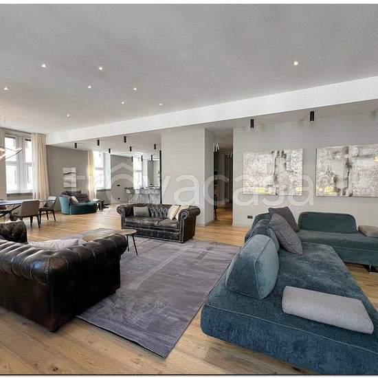Appartamento di prestigio al piano terzo, con affaccio sulla via centrale della città di Torino, Via Roma e area pedonale antistante. L’immobile è dotato di portineria con custode. L’appartamento si sviluppa su un unico livello ed è composto da zona giorno molto ampia e in posizione angolare, con cucina e area snack con affaccio vetrato su zona pranzo e soggiorno conversazione, a completare, zona tv (Sony Bravia 85") e playstation 5 con ampi divani. La zona notte gode di tre camere da letto molto ampie, di cui una padronale con servizio igie...