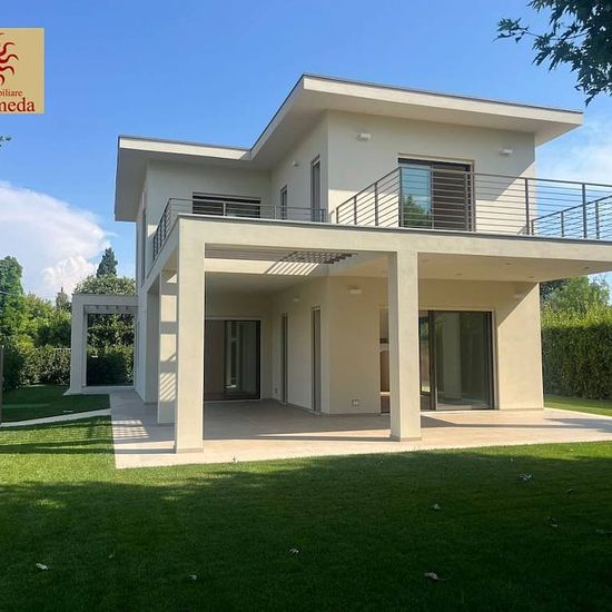 Rif 746 in esclusiva - Splendida villa singola di nuova costruzione con pregiate rifiniture, disposta su due piani fuori terra, circondata da un ampio giardino, con posti auto privati ed a circa 1,5 km dal mare. Internamente così composta: piano terra: ingresso, ampio soggiorno con zona pranzo e cucina open – space, una camera da letto matrimoniale con bagno en – suite, ripostiglio, un vano adibito a locale tecnico e lavanderia, bagno di cortesia ed ampio porticato attrezzato per il living all'aperto; piano primo: disimpegno, tre ampie camer...