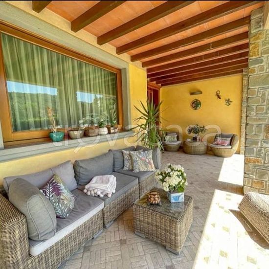 Villa di lusso privata immersa in un parco di 6000 mq con olivi e fiori, grande piscina con aqua salata e jacuzzi con ombrelloni e lettini, gazebo dove poter cenare con bbq, ampio parcheggio. Dal giardino si accede direttamente in casa attraverso la veranda dove potersi rilassare troviamo un grande ingresso con pavimenti e colonne in marmo una grande sala da pranzo e sala tv, una cucina all'americana con isola completa di elettrodomestici, tavolo e divano, un bagno grande con vasca da bagno. Salendo mezzo piano troviamo due ampie camere con ...