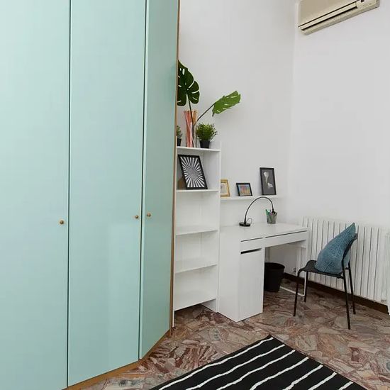 Zona Centro, posizione strategica e ambita, si affitta una bellissima stanza singola Stanza Semplice ristrutturata appositamente per offrire comfort e comodità ai nostri studenti. La stanza è dotata di letto ad una piazza e mezzo, armadio 3 ante, scrivania, comodino, tendaggi, specchio, scarpiera, libreria, quadri. I colori delle pareti favoriscono il buon umore e aiutano nello studio. This is a shared 7-bedroom apartment located in Rimini, VIA GARIBALDI, 107. The apartment comes fully furnished and includes essential amenities such as a was...