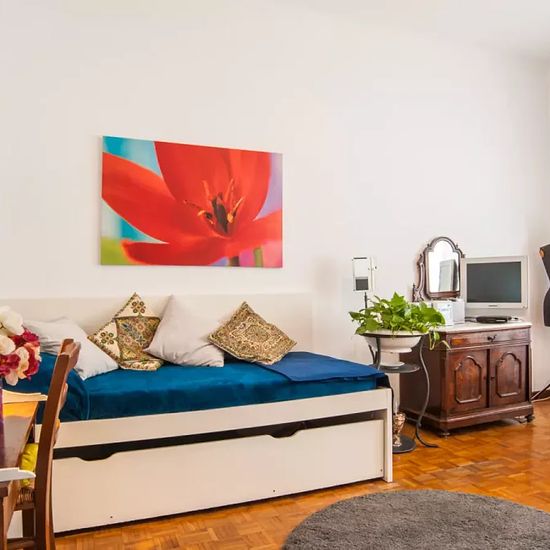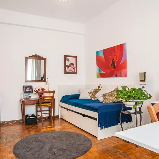 Bedroom 1 has a single bed, and plenty of storage space available with drawers, shelving and a big wardrobe. The room has heating and independent key access, and it is very well-lit. There is a room for rent in this extravagant 2-bedroom apartment on Via Giuseppe Allievo in Sant'Onofrio with a live-in landlady. The modern kitchen comes fully equipped and has access to the decorated balcony, while the spacious living area offers sofas and a dining table. The shared bathroom has a bath and shower. If you're looking to live out of the way in a ...