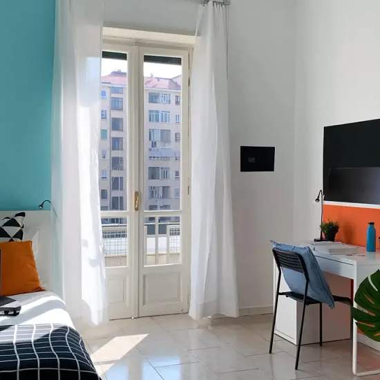 Zona Cit Turin, posizione strategica e ambita, si affitta una bellissima stanza singola ristrutturata appositamente per offrire comfort e comodità ai nostri studenti. La stanza è dotata di presa TV, letto singolo, armadio 3 ante, scrivania con portaoggetti, comodino, tendaggi, specchio, libreria, un confortevole angolo lettura ed uno spazioso balcone con affaccio sull'interno via. I colori delle pareti favoriscono il buon umore e aiutano nello studio. This shared room in a 3-bedroom apartment located in Centro, Turin is the perfect choice fo...